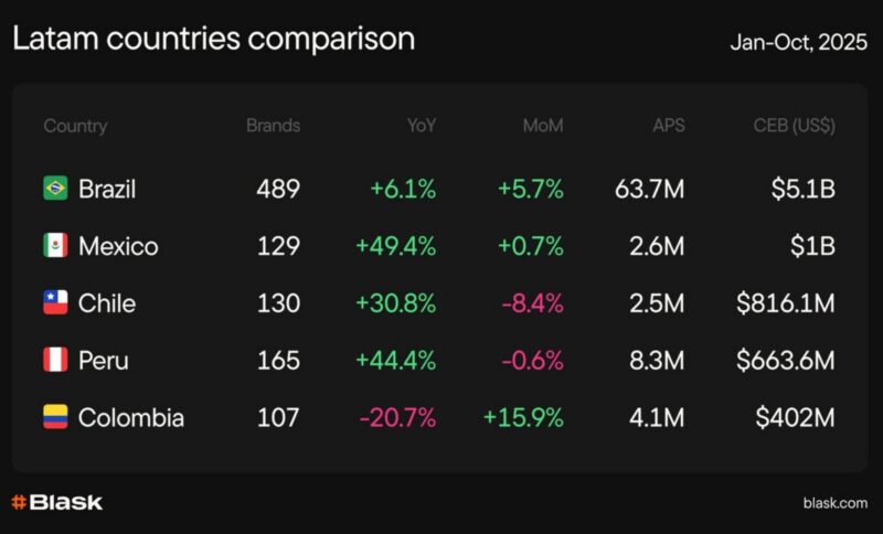 Y Brasil se ha consolidado como el mayor mercado de apuestas y iGaming de América Latina, con amplio liderazgo.