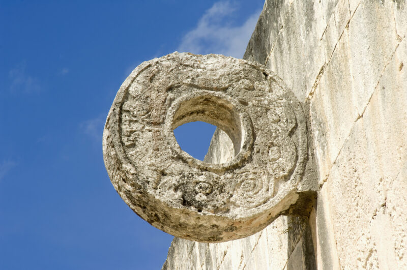 La pelota de caucho, que podía pesar hasta cuatro kilos, era el material protagonista. Los jugadores, utilizando únicamente caderas, codos o rodillas, debían mantenerla en movimiento sin tocarla con las manos o los pies. En algunas variantes, el reto culminaba al pasar la pelota por anillos de piedra incrustados en los muros, un logro casi imposible que adquiría un carácter mítico.