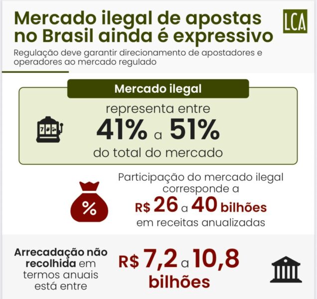 Un estudio de LCA Consultores, en colaboración con el Instituto Locomotiva, indica que entre el 41% y el 51% de las apuestas en Brasil aún se realizan en plataformas no autorizadas, generando aproximadamente R$40 mil millones al año y una pérdida estimada de R$10.8 mil millones en ingresos. Por cada 5 puntos porcentuales de formalización del mercado, el país podría recaudar aproximadamente R$1 mil millones más, sostuvo el IBJR.
